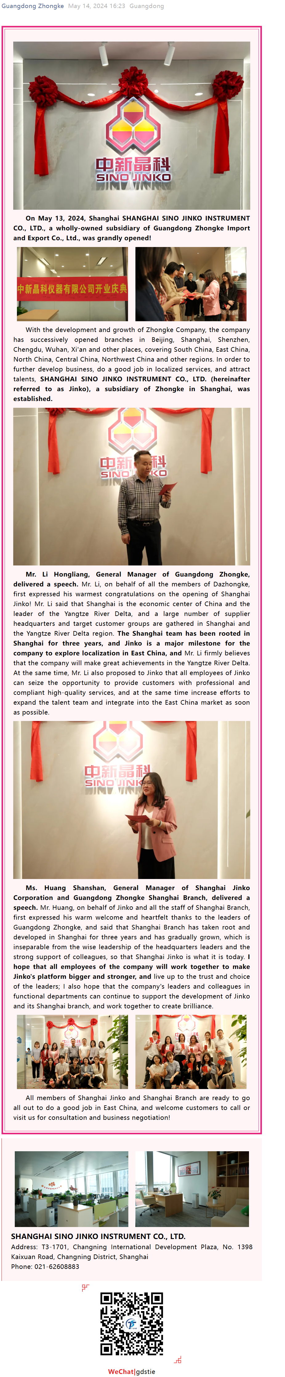 Warmly celebrate the grand opening of SHANGHAI SINO JINKO INSTRUMENT CO., LTD.